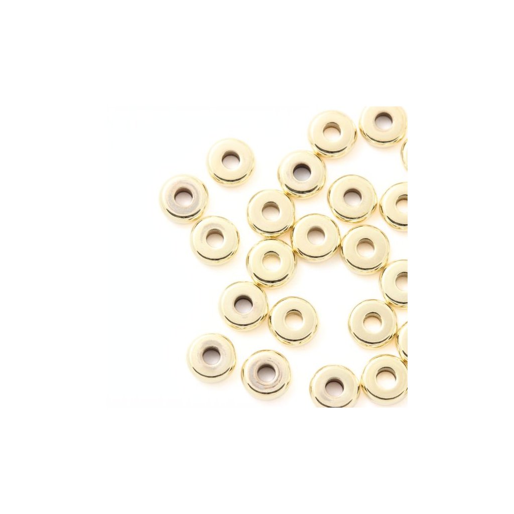 Rondelka z chirurgickej ocele o rozmere 6/2mm s povrchovou úpravou gold plating 24kt. Medzidielok môžete rôzne kombinovať a zdobiť rozteče medzi korálkami.